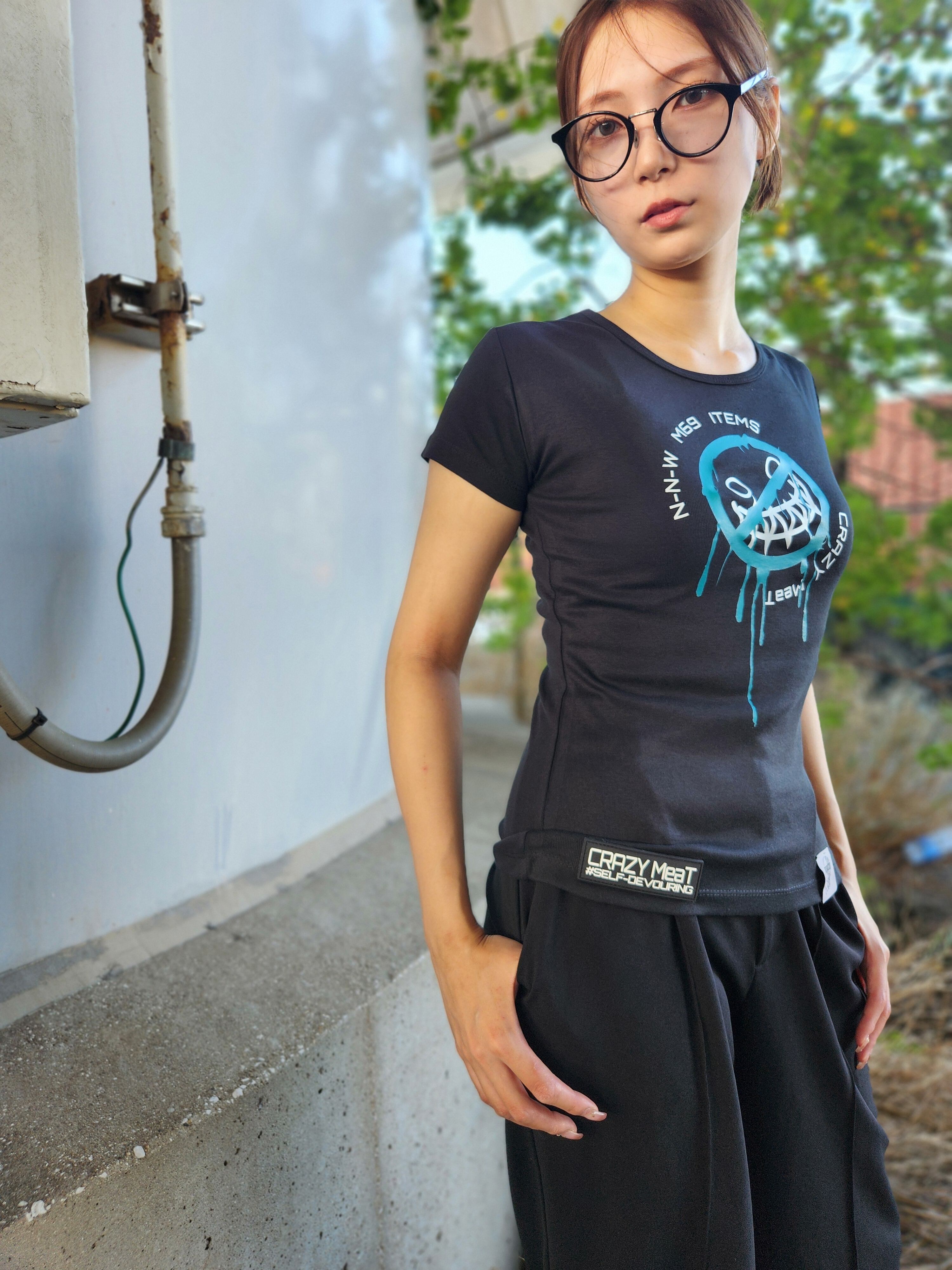 【レディースシルエットTシャツ】TRY TO STOP ME. BLACK×ターコイズ