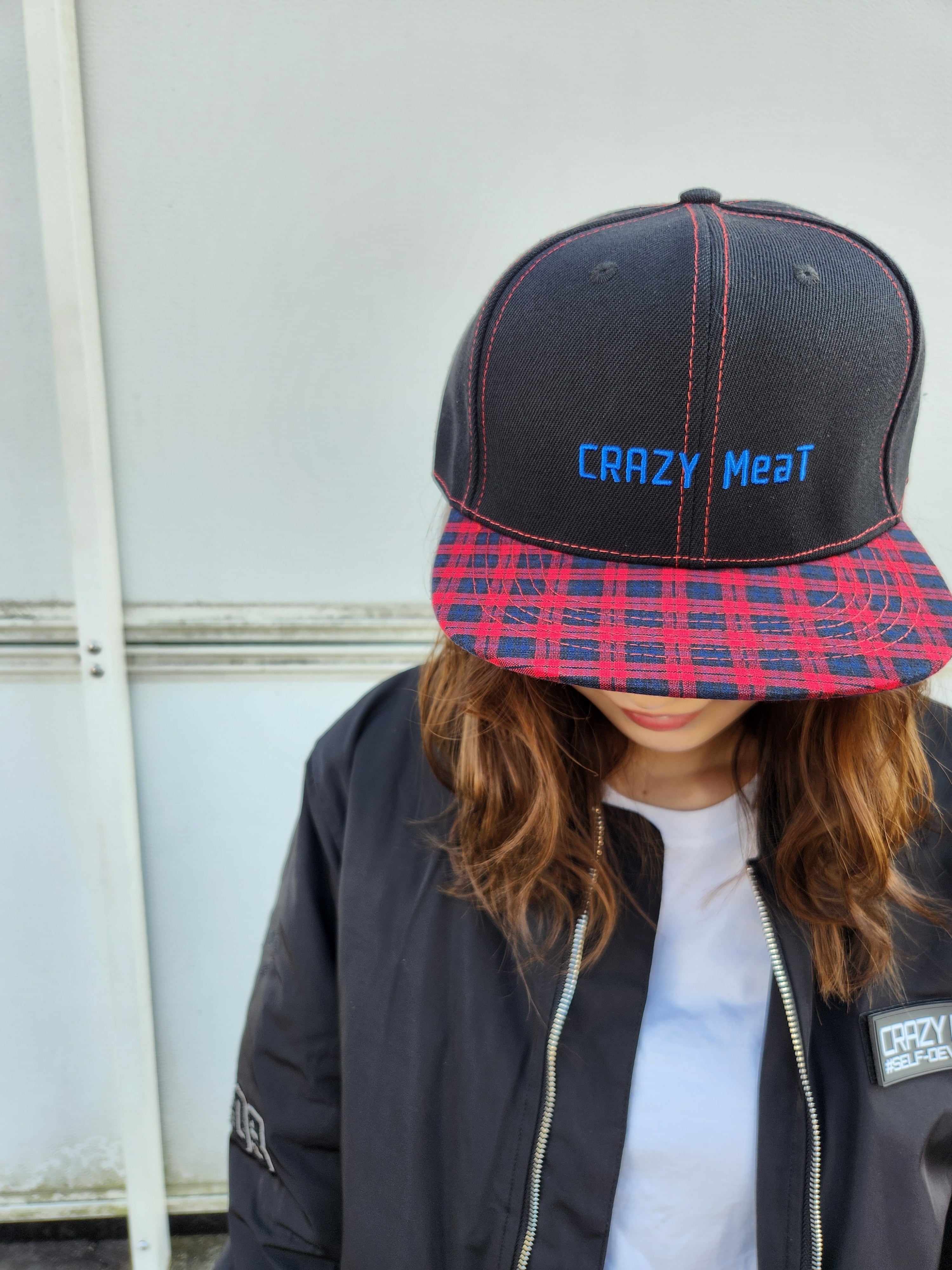 【フラットバイザーキャップ】CRAZY MeaT:チェック柄 RED