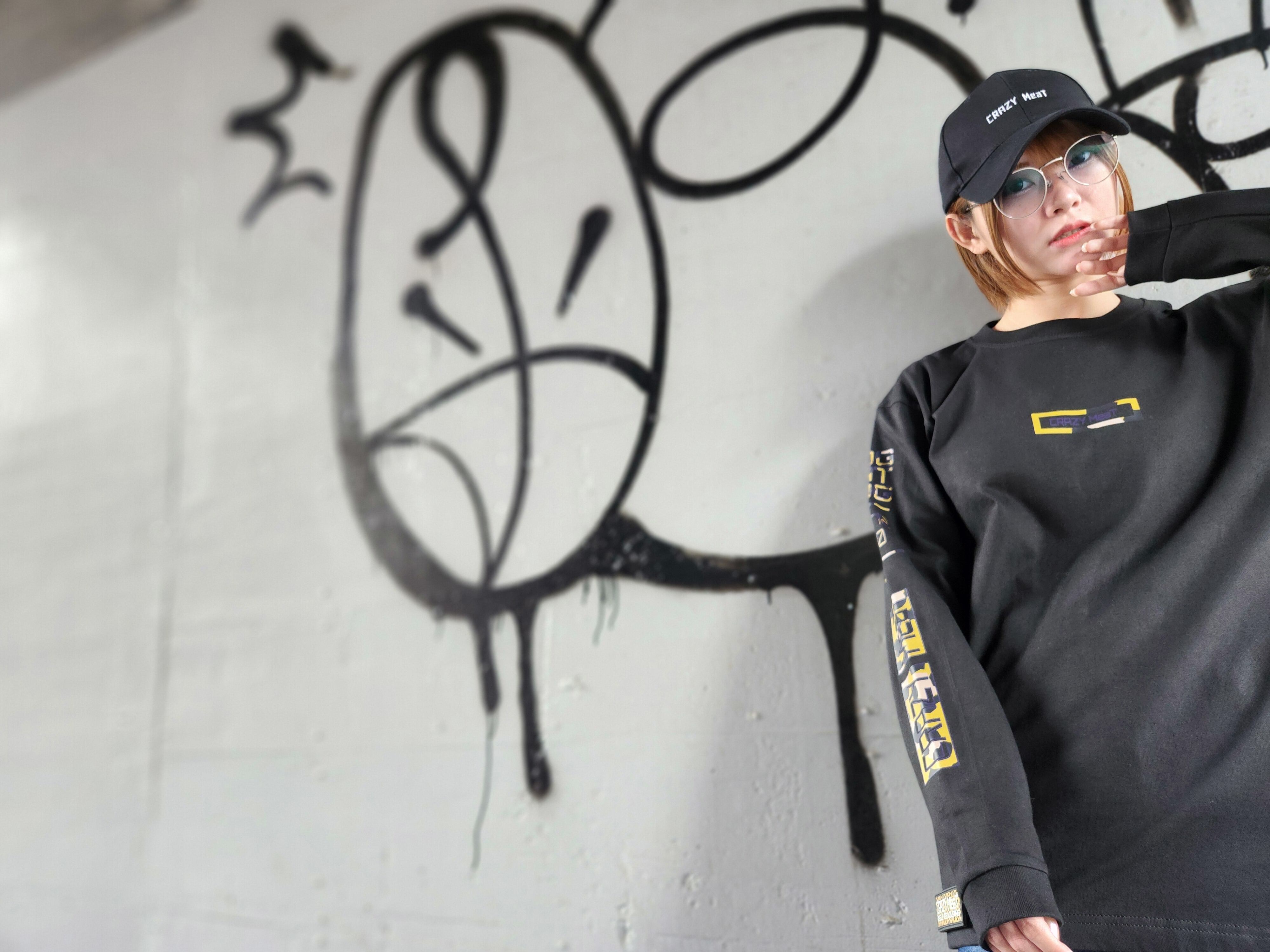 【ロングスリーブTシャツ】レオパにこちゃん関西モデル BLACK
